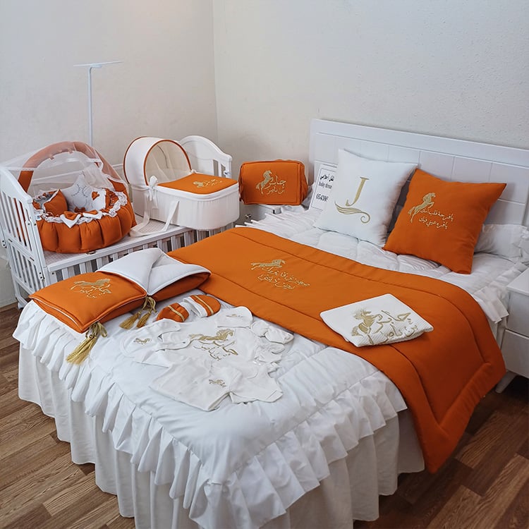 طقم مفرش استقبال المولود الحديث بتصميم مخصص يحتوي على 27 قطعة