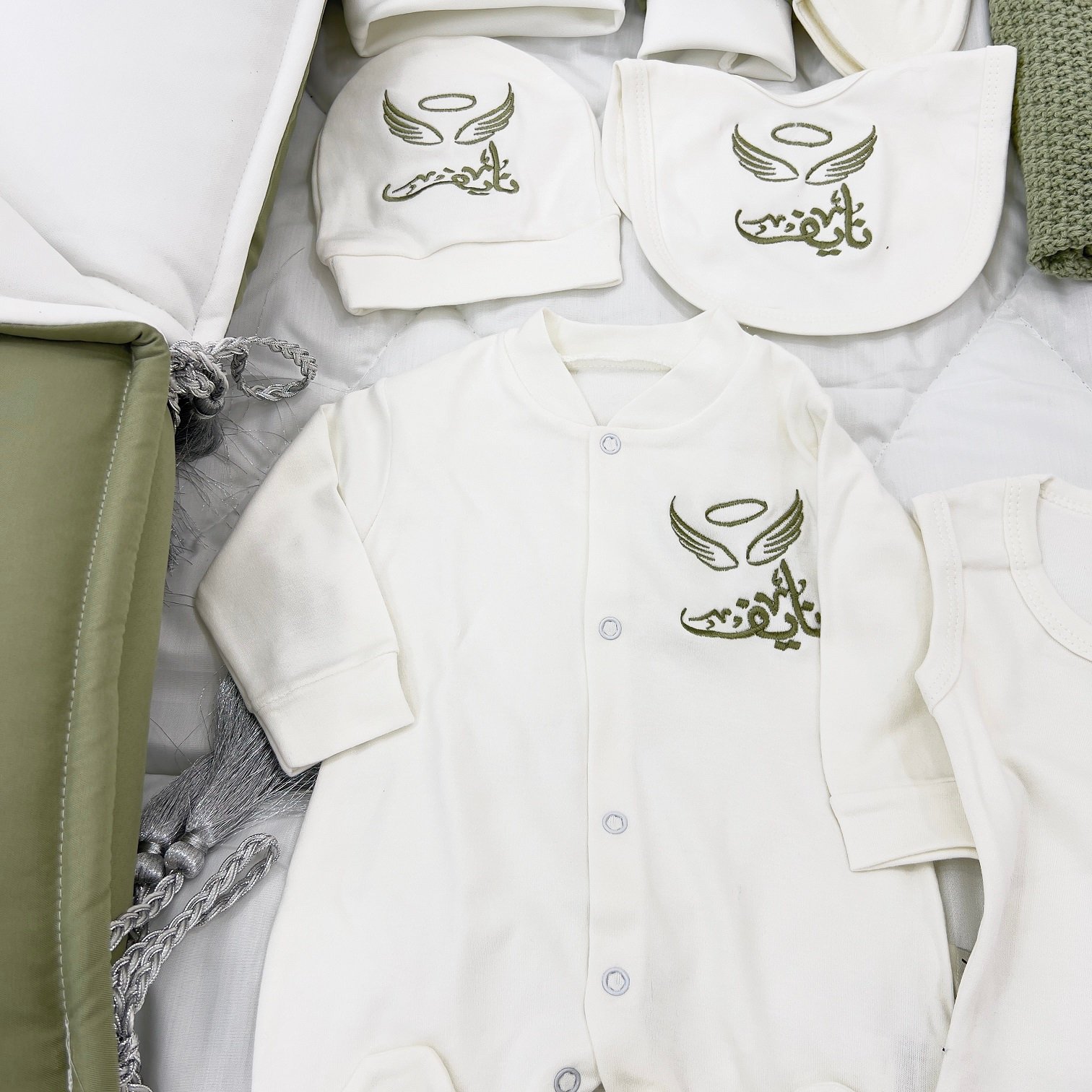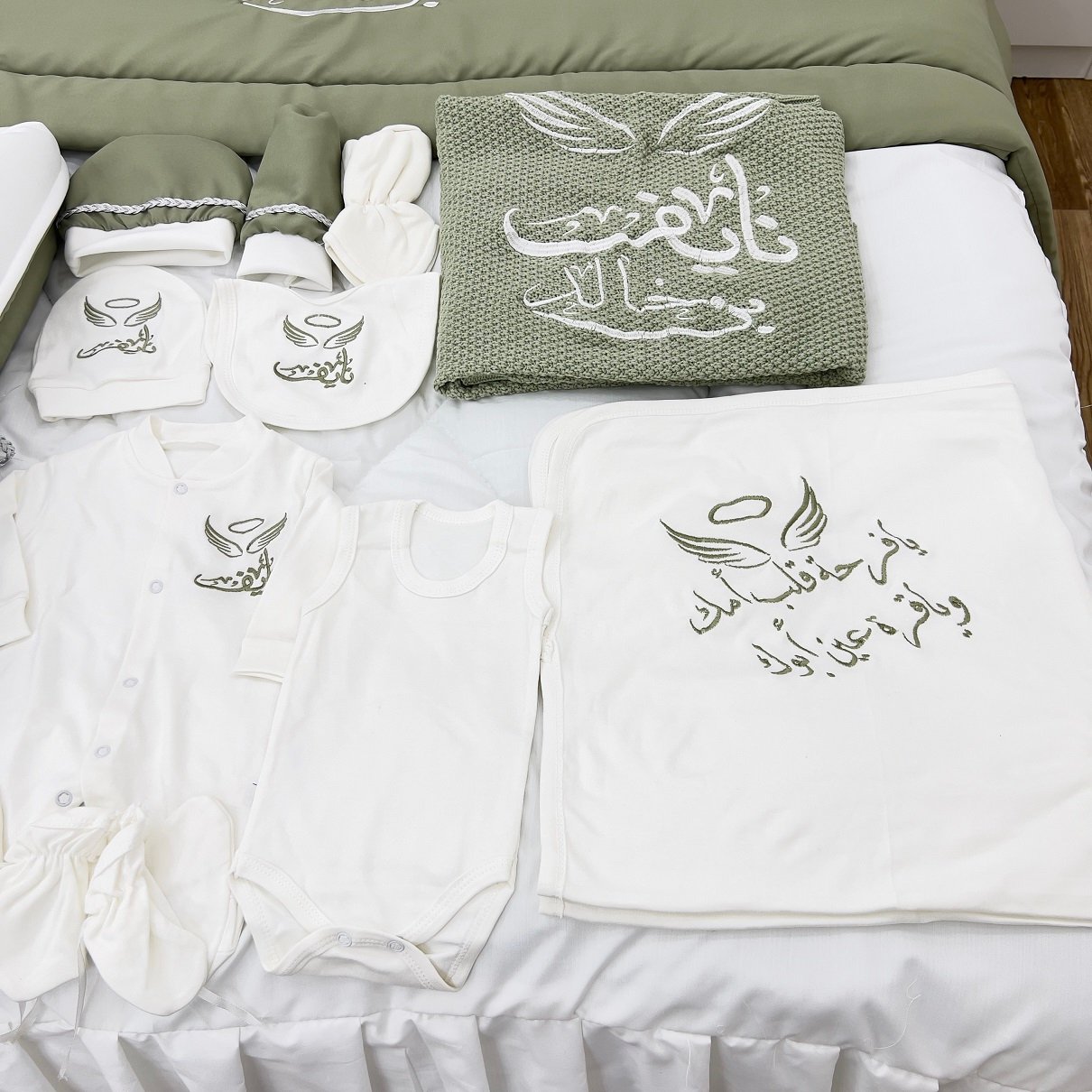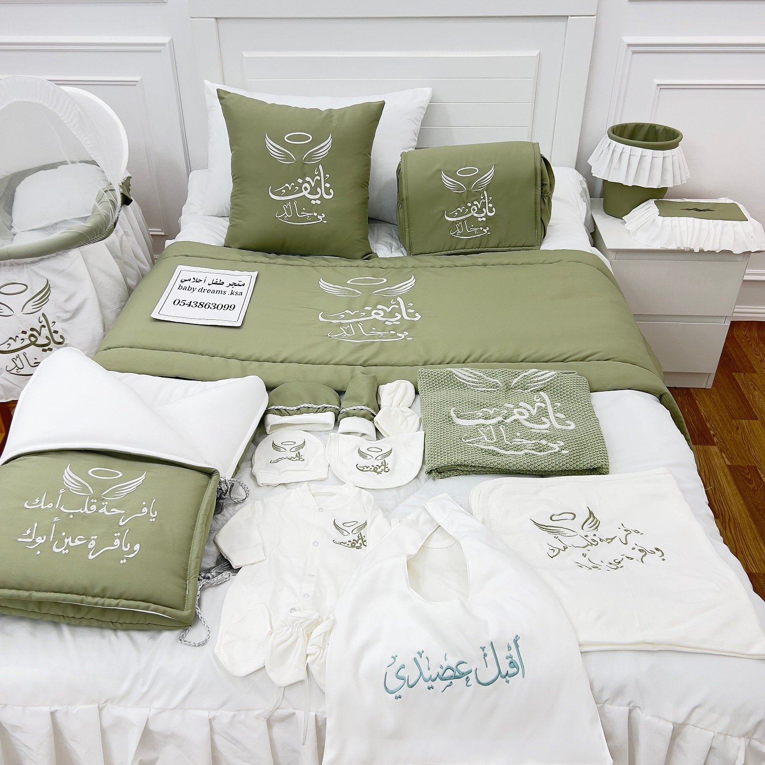 طقم مفرش استقبال المولود الحديث بتصميم مخصص يحتوي على 27 قطعة