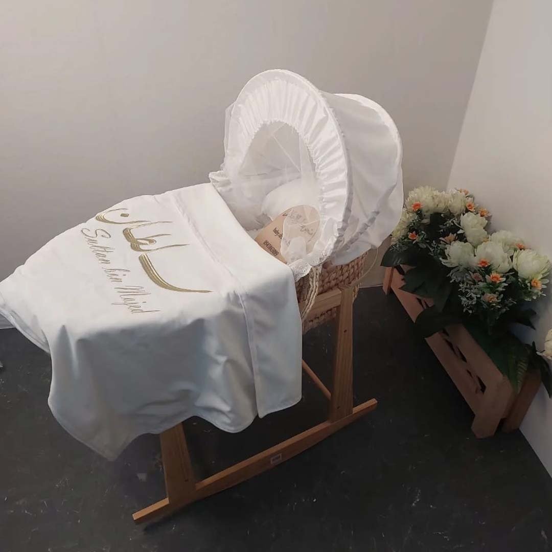 ◉مهد سلة موسى مزود بمظلة مدمج معها ناموسية تغطي كامل السرير لتحمي طفلك من الحشرات